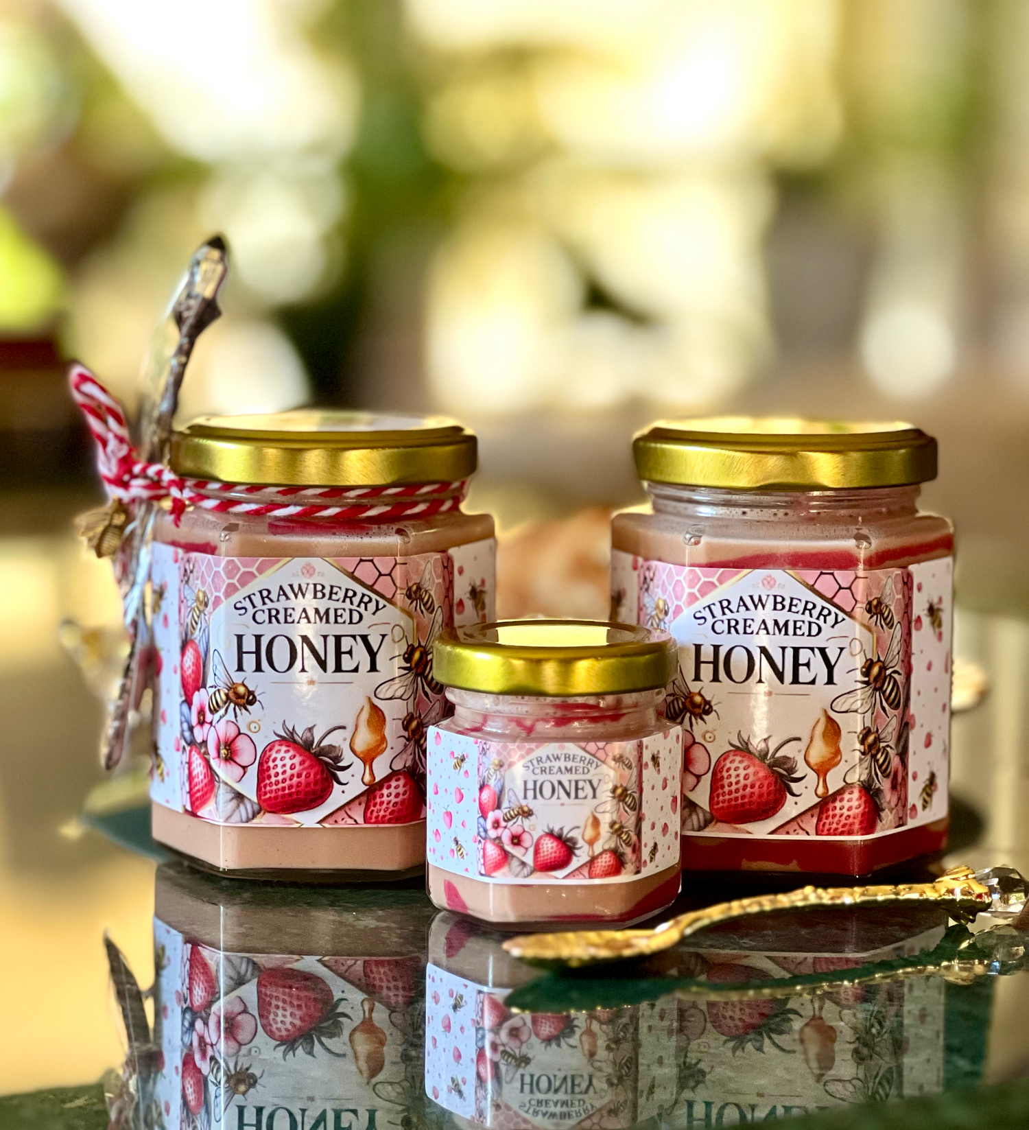 Gourmet Honey Gift – Berry Creamed Honey in Glass Jar with Ribbon & Teaspoon – Sweet, Fruity & Gift-Ready